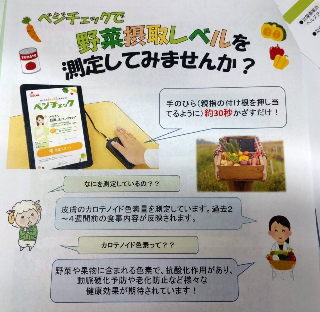 〇健康保険組合さんによる、一人づつ、どのくらい野菜がとれているのか? の測定会